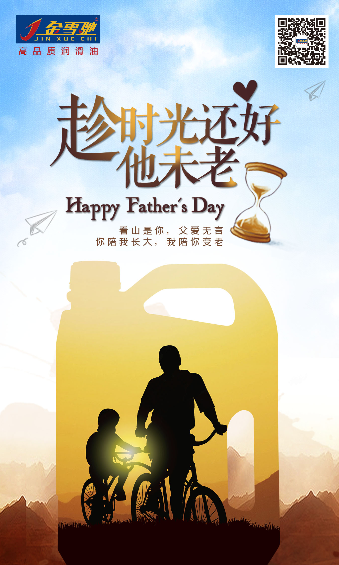 小時(shí)候,離天空最近的地方是父親的肩膀。你站在肩上看著全世界,他卻望向了你,這就是他的全世界。即便我們長(zhǎng)大了,依舊如此。父親的關(guān)愛(ài)就如同金雪馳潤(rùn)滑油給予汽車(chē)發(fā)動(dòng)機(jī)的長(zhǎng)期呵護(hù)。金雪馳潤(rùn)滑油特有的活力磁智能分子牢牢吸附于發(fā)動(dòng)機(jī)表面,形成特殊的保護(hù)油膜,時(shí)刻提供保護(hù),防止磨損,以卓越的性能,帶給愛(ài)車(chē)超凡表現(xiàn),讓愛(ài)車(chē)不懼前行。 你陪我長(zhǎng)大,我陪你變老。趁時(shí)光還好,他未老,讓我們把愛(ài)獻(xiàn)給最偉大的父親,給他最好的陪伴。父親節(jié),別忘了跟父親說(shuō)聲節(jié)日快樂(lè)!感恩于心,一路相伴。金雪馳潤(rùn)滑油時(shí)刻為您守護(hù)愛(ài)車(chē),讓您安心。金雪馳祝天下所有的父親,身體健康,節(jié)日快樂(lè)。