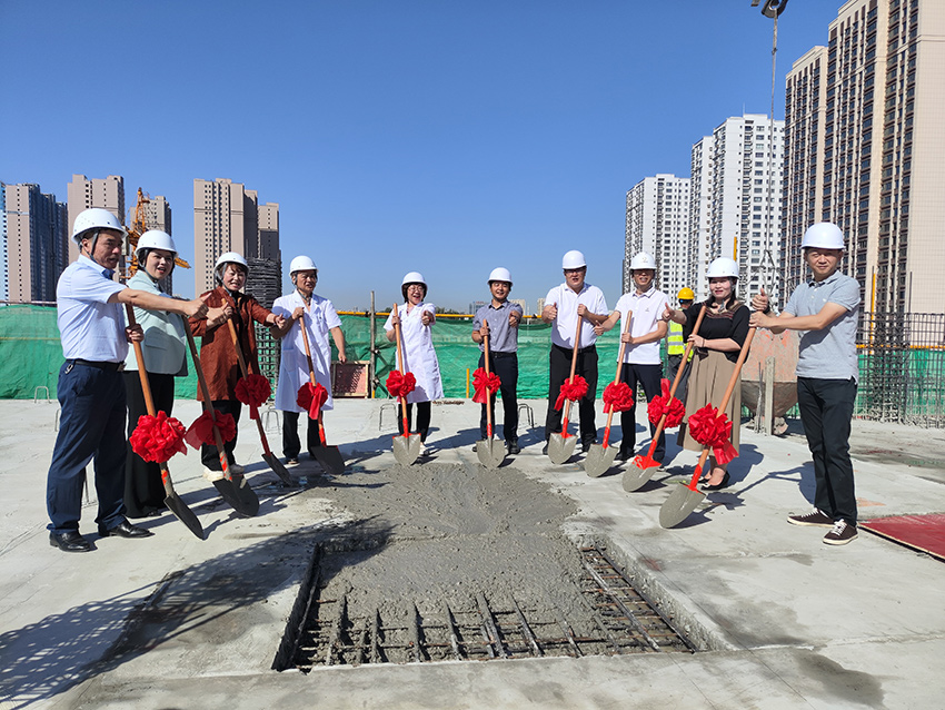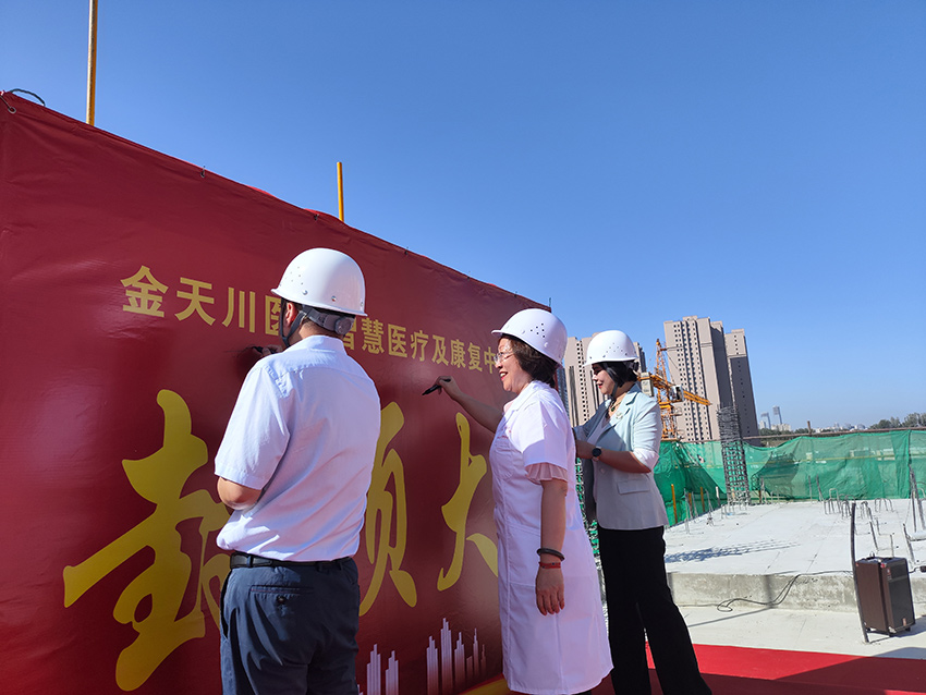 9月3日上午,金天川醫(yī)院隆重舉行喜封金頂儀式。今天的儀式發(fā)展重要的全體醫(yī)護(hù)人員,施工單位,設(shè)計單位,監(jiān)理單位代表參加了今天的封頂儀式。集團(tuán)公司副總經(jīng)理、金天川醫(yī)院總經(jīng)理劉昆女士發(fā)表了熱情洋溢的講話,劉昆副總強調(diào)今天是醫(yī)院發(fā)展史上的一個里程碑,金天川醫(yī)院即將翻開嶄新的一頁。施工單位新疆七星科技股份有限公司代表現(xiàn)場進(jìn)行了表態(tài)發(fā)言,表示將保證醫(yī)院大樓能夠保質(zhì)保量如期交付使用。隨著封頂禮炮燃起,最后一罐混凝土完成澆筑,標(biāo)志著醫(yī)院正式封頂!