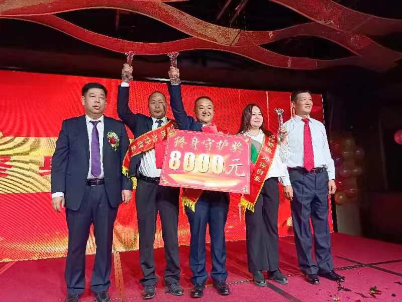 隆成集團從來沒有忘記過那些為公司的發(fā)展默默無聞的貢獻者和守護者。頒獎環(huán)節(jié)是整個晚宴的重要環(huán)節(jié),共頒發(fā)4個獎項。分別是風雨同舟獎、舍身擔當獎、終身守護獎和無私奉獻獎。其中:華泰隆公司蘇平學、馬玲,海藍公司黃思純,金雪馳股份公司方曉莉、張航、顧卓楠、鄧君霞、金雪馳吳邦軍、徐芹龍等9名一畢業(yè)就入職隆成,并陪伴隆成走過10年以上的員工獲得風雨同舟獎,每人獎金5000元;金雪馳股份公司退休職工陳建平多年前因及時發(fā)現(xiàn)并處理了一處火災隱患,為公司挽回財產(chǎn)損失,獲得了舍身擔當獎,每人獎金5000元;嘉潤德凌志公司翟德新、金雪馳股份公司包永珍、康根黨等3名陪伴隆成25年的員工獲得了終身守護獎,每人獎金8000元;金天川醫(yī)院名譽院長周志明榮獲無私奉獻獎,每人獎金10000元。